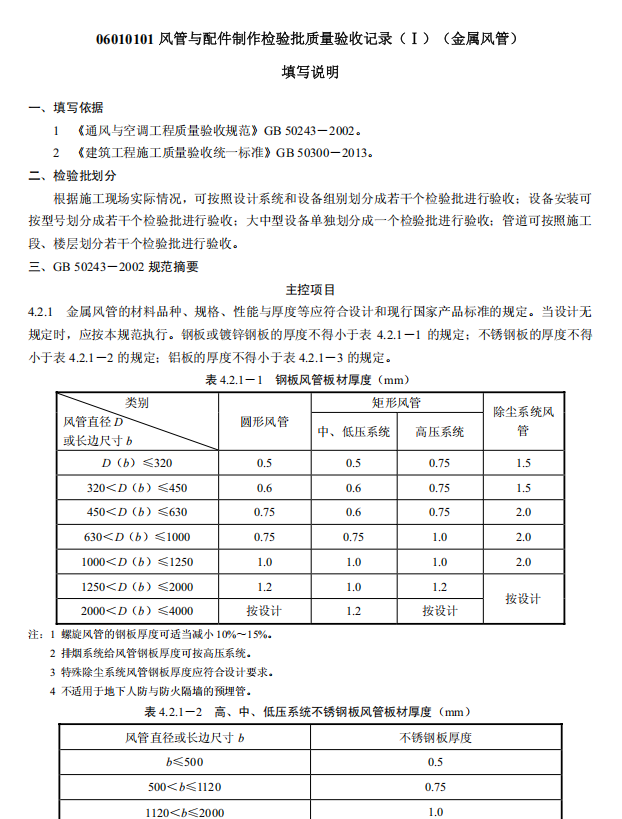 新国标全套检验批表格范例填写说明